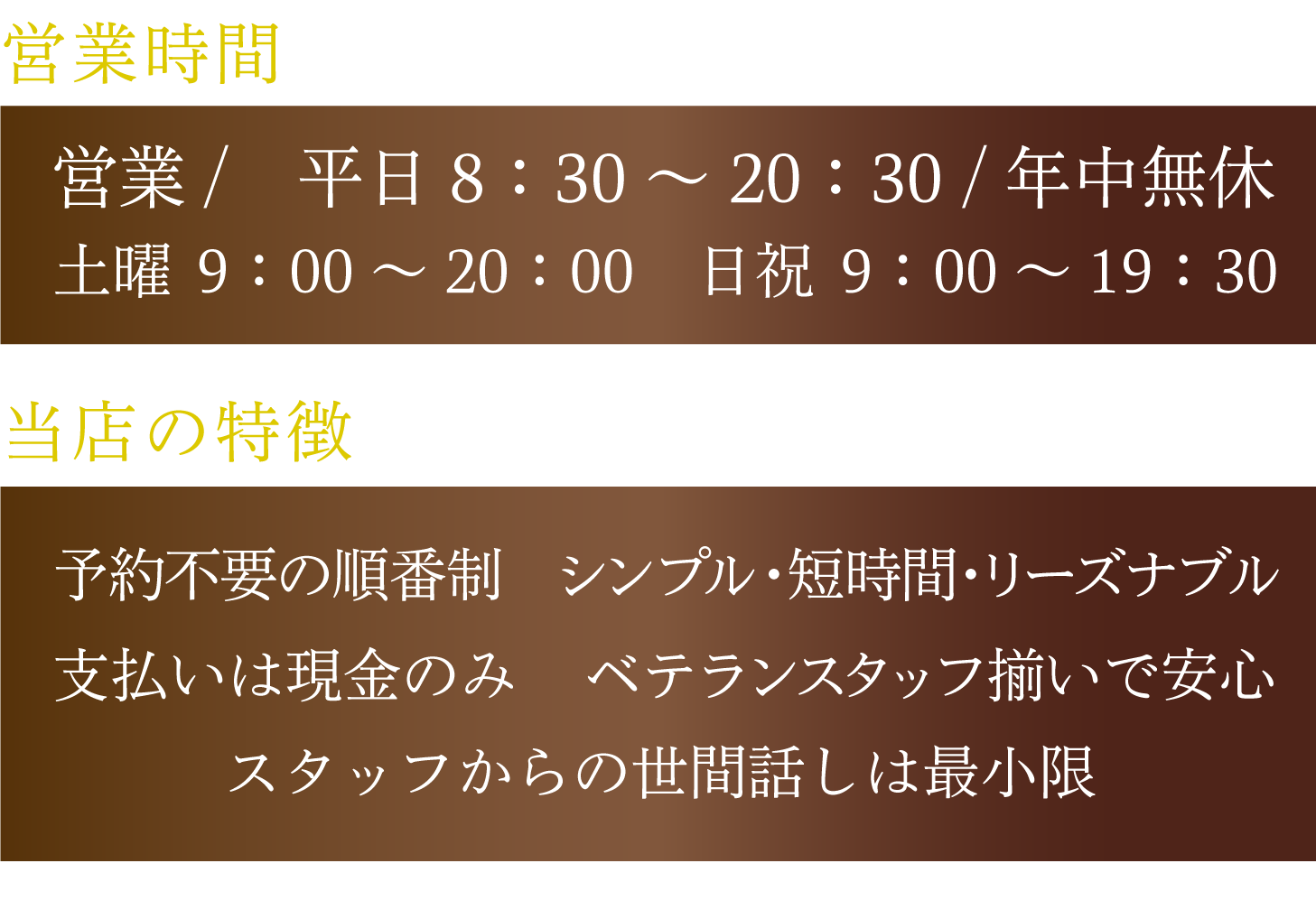 2025年1月から平日の最終受付を20:30とさせていただきます。ご了承ください。